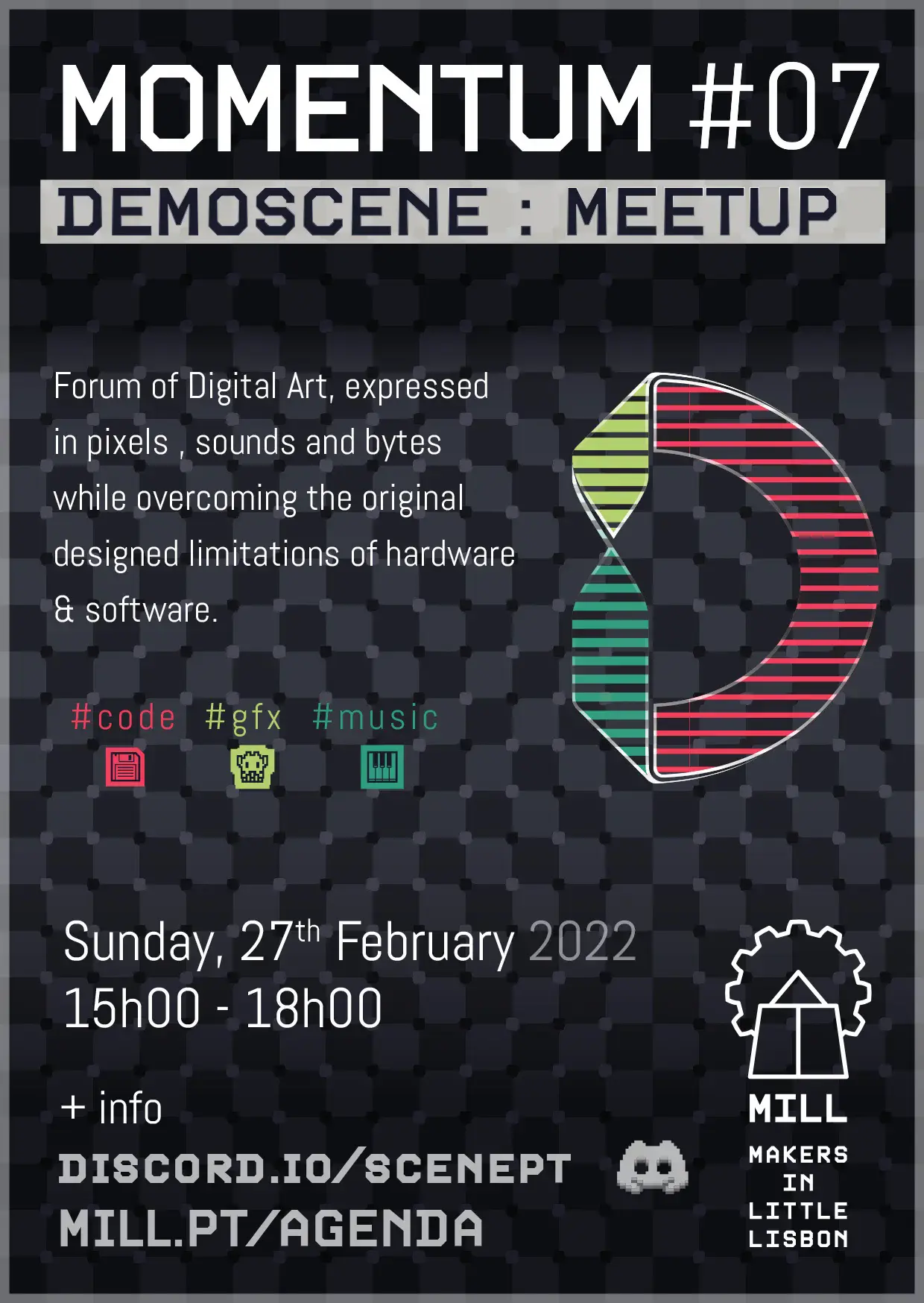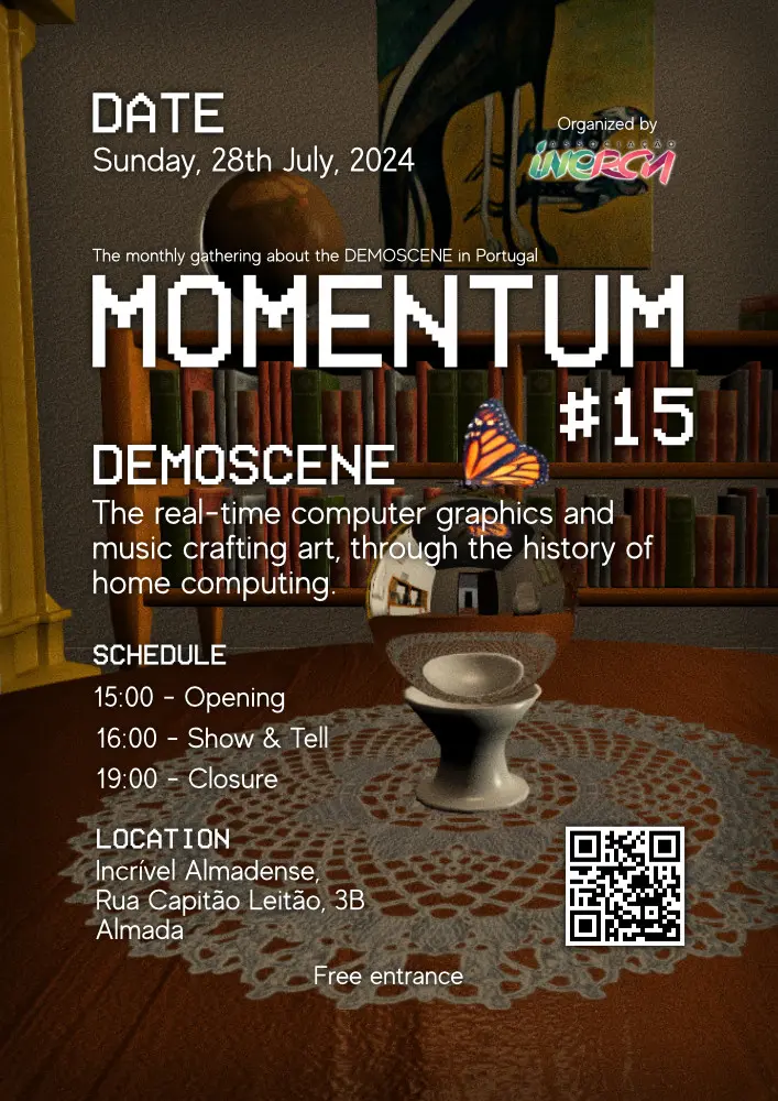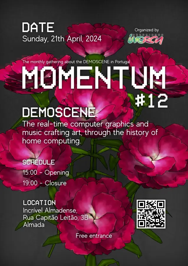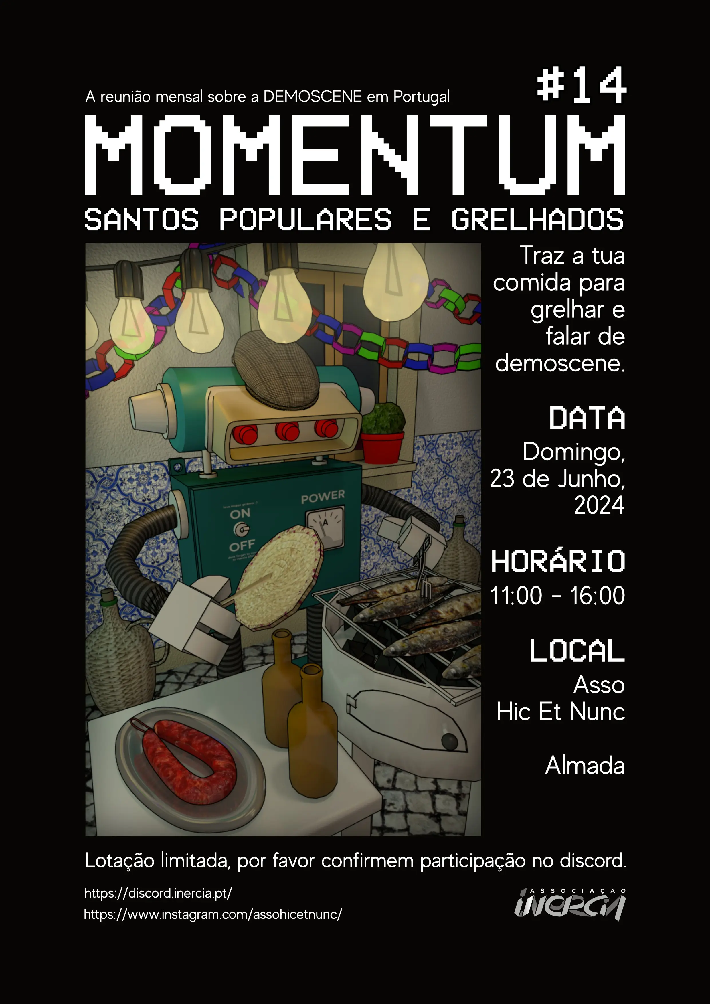 Momentum é um encontro mensal de entusiastas da Demoscene portuguesa. Para os veteranos é uma boa oportunidade de voltar ao ativo, para as pessoas curiosas é uma oportunidade de conhecer melhor a comunidade ativa da Demoscene em Portugal.